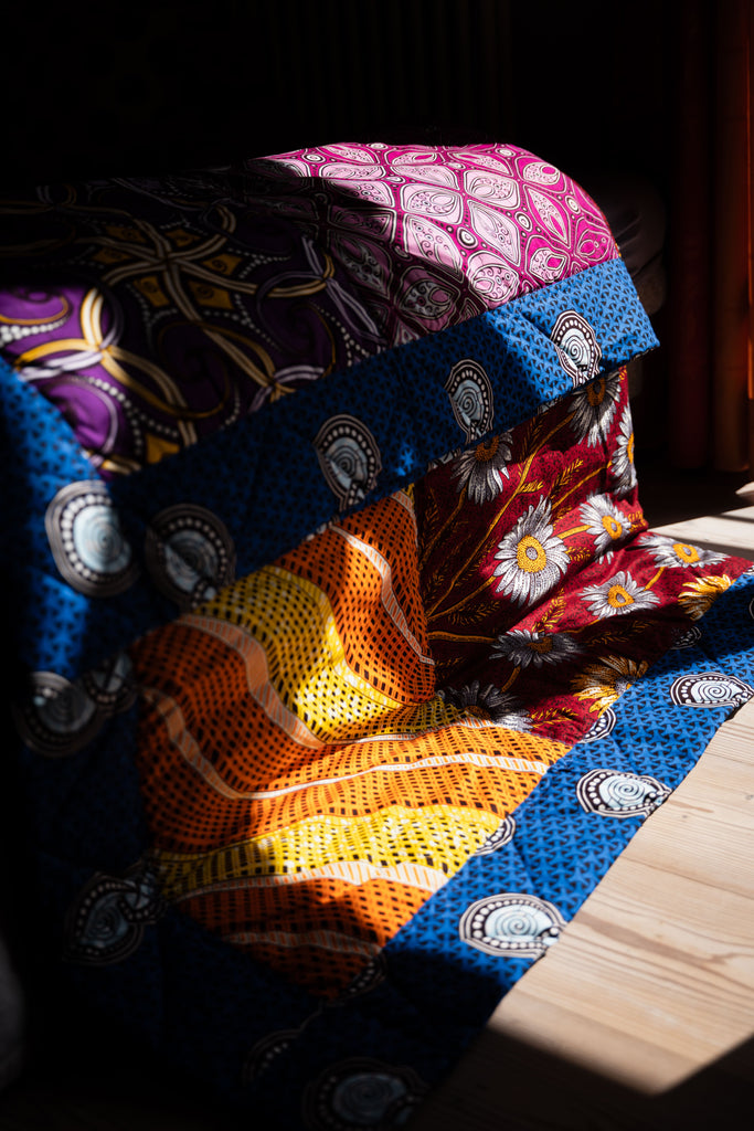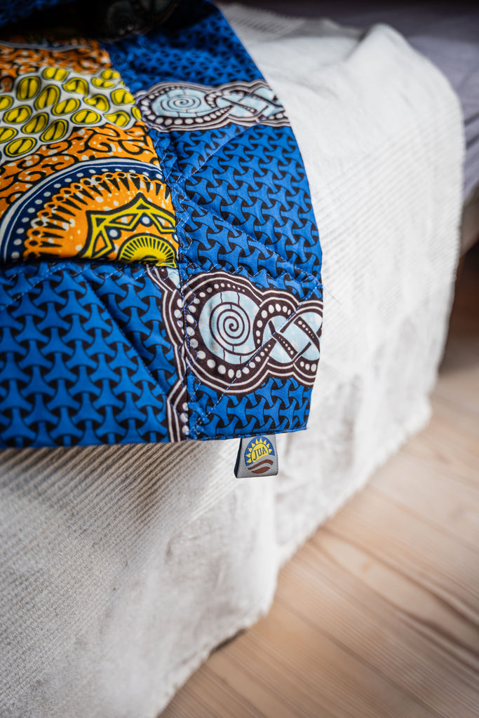 Jede JUA-Decke wird individuell nach Maß gefertigt – genau in der Größe, die du dir wünschst. Dabei kannst du sowohl Vorder- als auch Rückseite in deinem bevorzugten Farbspektrum wählen: Gelbtöne, Blautöne, Grüntöne oder Rottöne.