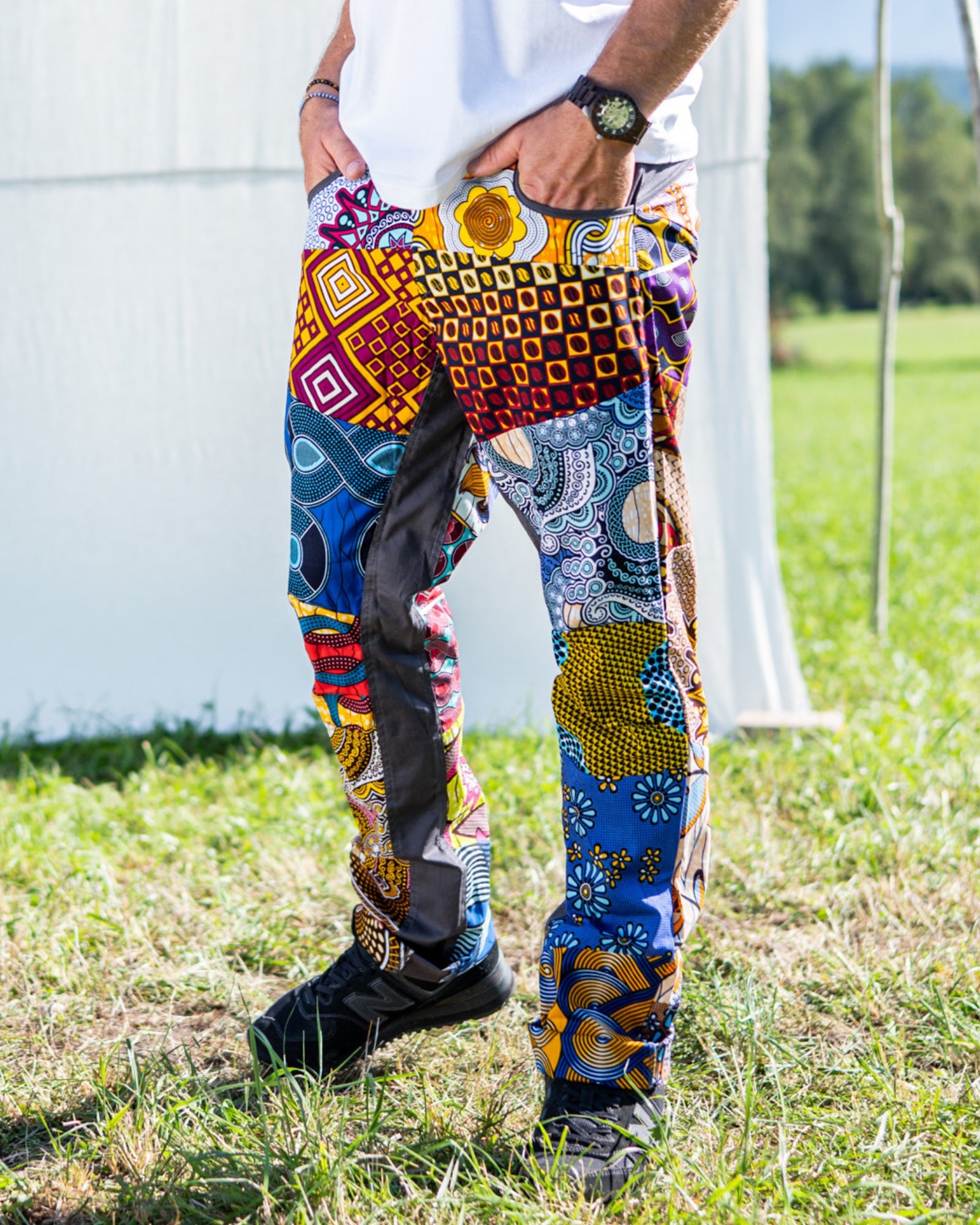 Discover our handmade, one-of-a-kind summer trousers made from organic cotton for women and men – SLIM trousers made from 100% cotton in a unique patchwork style.