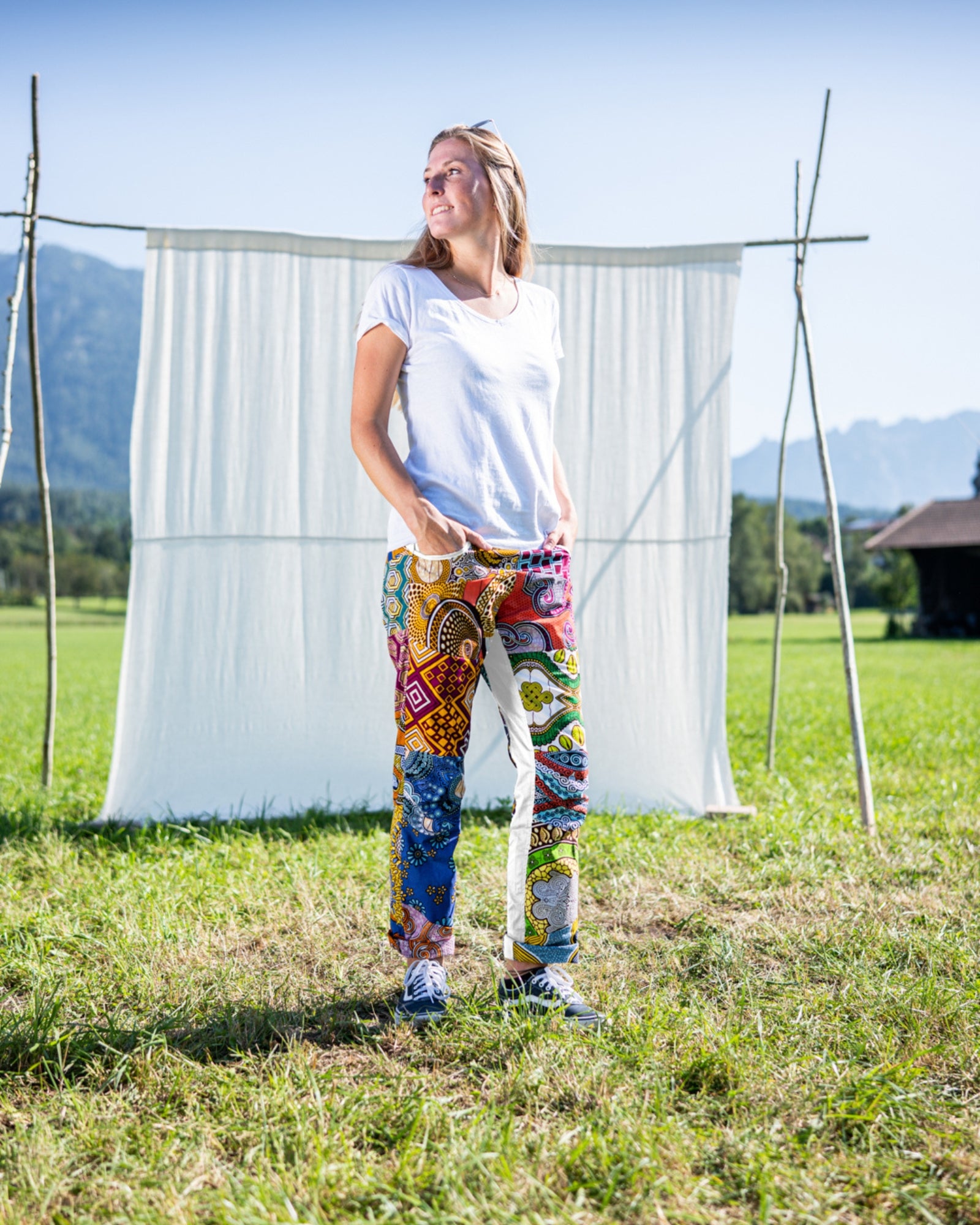 Fair Fashion Organic Summer Trousers: unique patchwork design for a conscious look